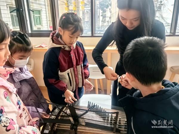 当天上午,黄鹤书房内筝声潺潺,以“琴润书香遇知音”为主题的古筝生活美学雅集在这里上演。二十余位居民齐聚一堂,在专业老师的带领下,共同走进古筝的悠远世界。