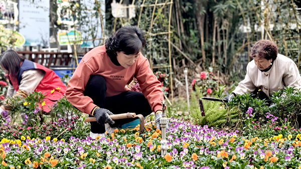 榜样的力量是无穷的。当张克萍种下的第一批花草绽放出鲜艳花朵时,邻居们纷纷被眼前的美景打动。“看到她一个人辛辛苦苦把荒地变得这么好看,我们也想加入进来。”桂阿姨笑着说。就这样,从一个人孤军奋战,到几户居民搭把手,再到越来越多的人主动参与,最终形成了45户居民共同参与的共建队伍。居民桂阿姨凭着造型设计的天赋,成了花园的“总设计师”,居民们种好花草后,她总会细心指导修改,让每一块小区域都独具特色。