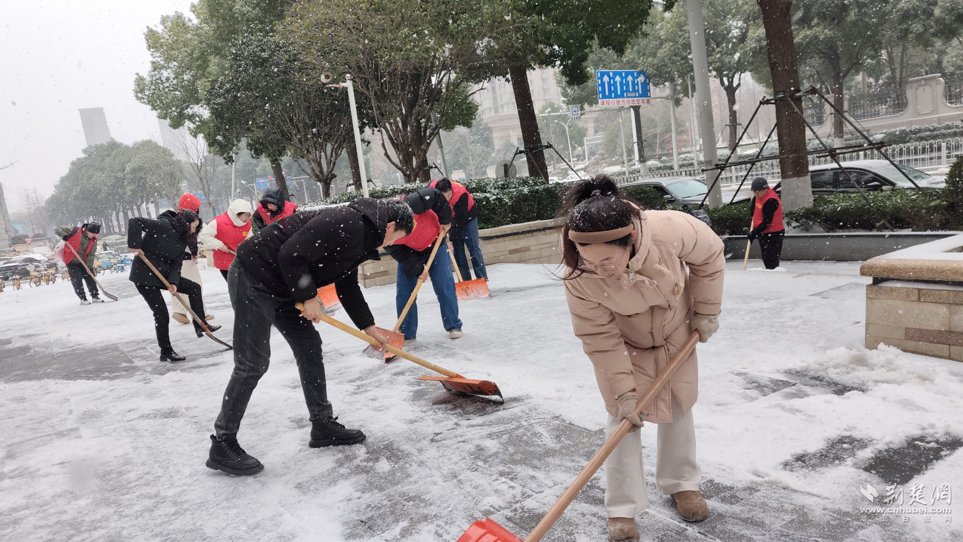 万松街道则积极动员楼宇集聚区新兴领域党组织、商铺和流动党员组建志愿服务队伍,开展清雪除冰行动。江汉人力资源服务产业集聚区党委发出倡议,10余家企业、100余名职工志愿者迅速响应。从商务楼宇到中央商务区地铁沿线,清雪行动全面铺开,为早晚高峰通行赢得时间。