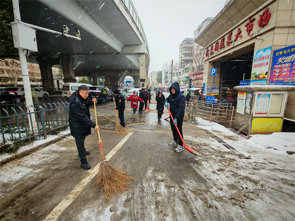 紫阳市场监管所组织武泰闸市场及志愿者清雪除冰。 通讯员供图
