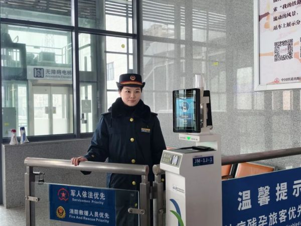 检票口前,客运员冯丽莹面对匆忙赶车的旅客,始终保持耐心与温柔。“最近两天雨雪天气,很多旅客怕赶不上车,进来都很匆忙。”冯丽莹说,她会先提醒旅客不要着急,避免滑倒或遗漏物品,再快速指引检票口位置,同时耐心解答首次出行旅客的各类疑问。让她难忘的是,今天早上不少旅客进站时衣服都被大雪打湿了,“我们会告知他们可以去洗手间吹干衣物,看到旅客们露出感动的笑容,觉得所有的辛苦都值得了。”