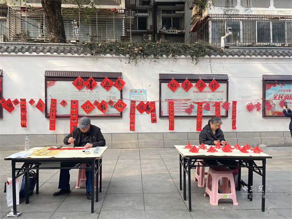 荆楚网(湖北日报网)讯(通讯员 曼晶晶)近日,武昌区珞珈山街道东湖村社区门口小广场化身成传统年俗的鲜活展台,“翰墨迎春 纸艺传情”主题活动在这里火热上演。红火的春联、精美的窗花与熙熙攘攘的人群交织成一幅喜庆的新春画卷。