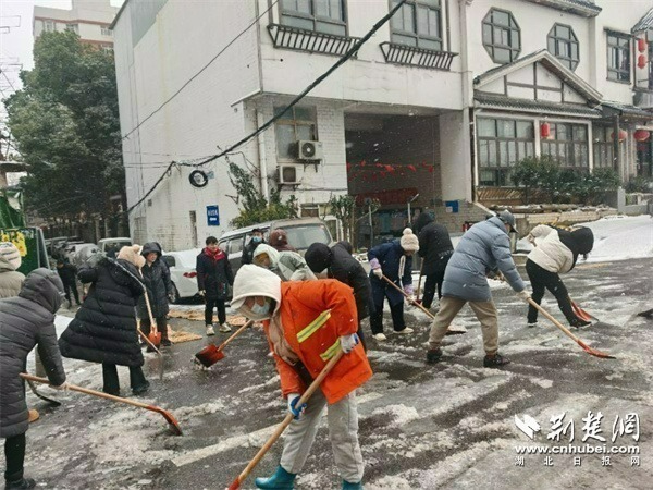 荆楚网(湖北日报网)讯(通讯员 邓艳 侯本瑞)1月20日,武汉迎来冬日首场降雪,面对降雪带来的道路积雪和结冰风险,武昌区杨园街道临江社区迅速响应,组织50余名辖区工作人员与志愿者铲雪除冰,为居民的平安出行保驾护航。