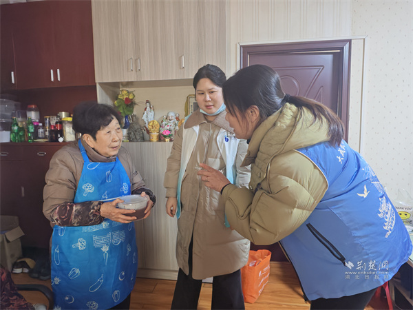 为独居老人送上腊八粥以及节日祝福。 通讯员供图