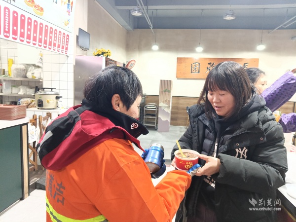为环卫工人送上暖心腊八粥。 通讯员供图