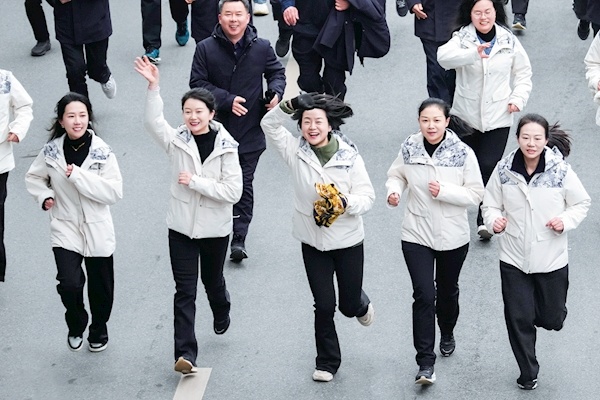 十堰与东风,自诞生起便血脉相融,一路同甘共苦、休戚与共。五十七载春秋流转,双方相伴走过寒来暑往,在朝夕相伴中相互成就、彼此滋养、共同成长。1月24日上午,十堰奥体中心热闹非凡,十堰市第32届迎新春健康跑暨东风公司第41届职工接力赛在此启幕。45支接力赛队伍奋勇争先,250个迎新春长跑方阵整齐前行,13700余名干部职工步履铿锵,用奔跑传递积极进取的信念,以汗水书写健康生活的追求,生动展现了东风人与十堰人并肩奋进、朝气蓬勃的动人风采。■文、图/本报采访组