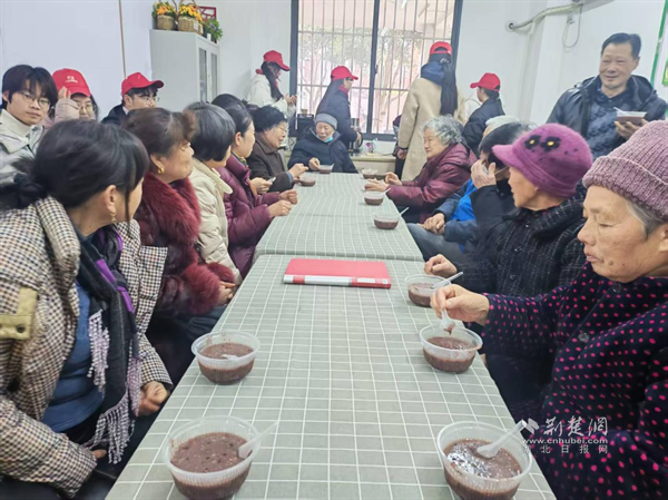 下午3时,活动正式开展,老年服务中心工作人员与青年志愿者为到场的老党员、退役军人送上腊八粥。78岁的张大爷品尝后表示,腊八粥味道地道,腊八喝粥是刻在骨子里的传统民俗,如今能和青年志愿者互动交流,感到十分幸福。