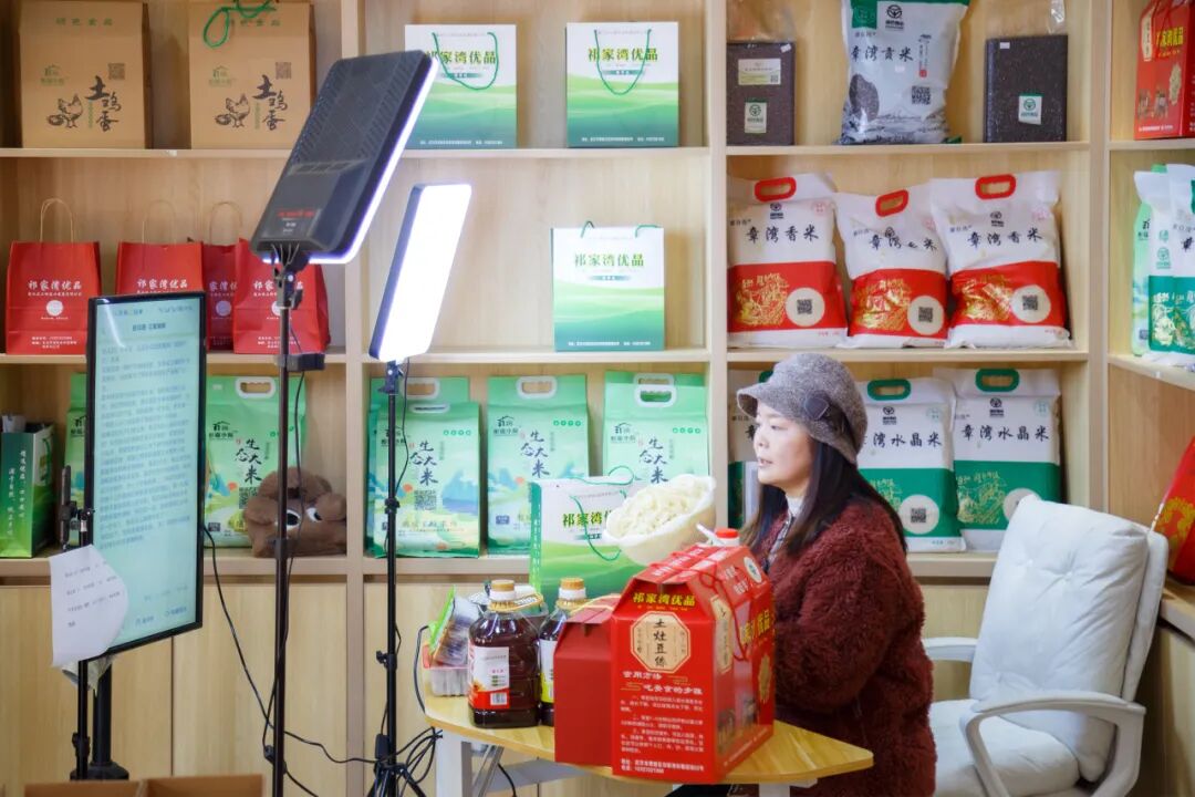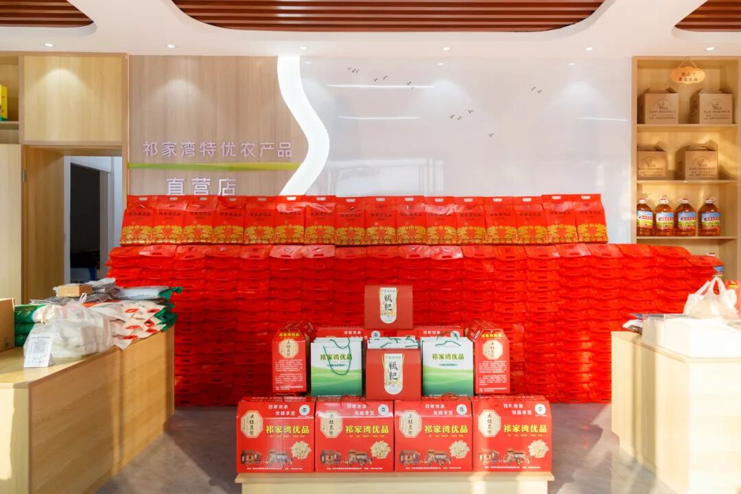 除了优质选品,在运营模式上,基地还采用线上线下双轮驱动。线上以“祁家湾优品”抖音直播间为主要阵地,组建了由5名村“两委”干部构成的直播团队,定期开展直播带货,直播场景覆盖生产现场等多种实地环境。线下则通过实体展示馆进行产品体验、零售以及面向企业与社区的团购批发业务,形成销售闭环。