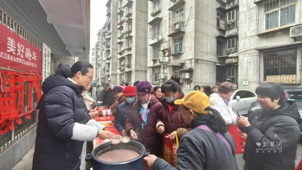 工作人员热情地将一碗碗热粥递到居民手中。大家一边品尝暖粥,一边分享着生活趣事,现场欢声笑语不断。工作人员们还将煮好的腊八粥送到社区高龄老人、独居老人家中,为他们送上节日的问候与关怀,叮嘱他们注意防寒保暖。