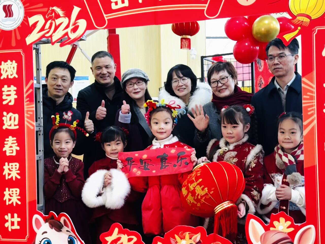 据悉,本次活动由一年级全体教师、家长志愿者共同策划组织,从场地布置到道具准备,从关卡设计到人员安排,都凝聚着大家的心血。体育馆内一年级教师手写马年主题对联与学生优秀作品相映成趣,营造出浓厚的新春氛围与校园文化底蕴。
