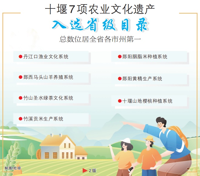 近日,省农业农村厅公布农业文化遗产资源省级目录(第二批)名单,江汉平原垸田传统农业生产系统等20项农业文化遗产上榜。其中,十堰市丹江口渔业文化系统、郧西马头山羊养殖系统、竹山圣水绿茶文化系统、竹溪贡米生产系统、郧阳胭脂米种植系统、郧阳黄精生产系统、十堰山地樱桃种植系统等7项农业文化遗产入选,总数位居全省各市州第一。