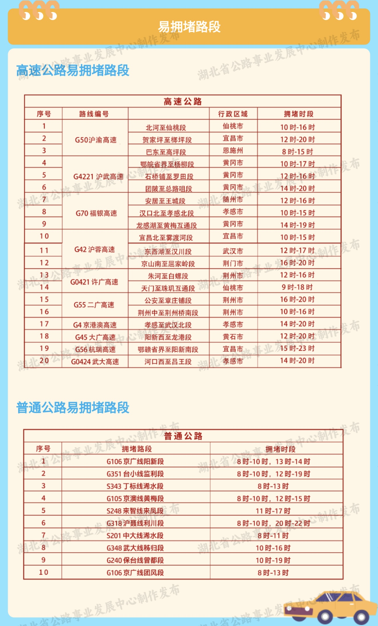 易拥堵路段: