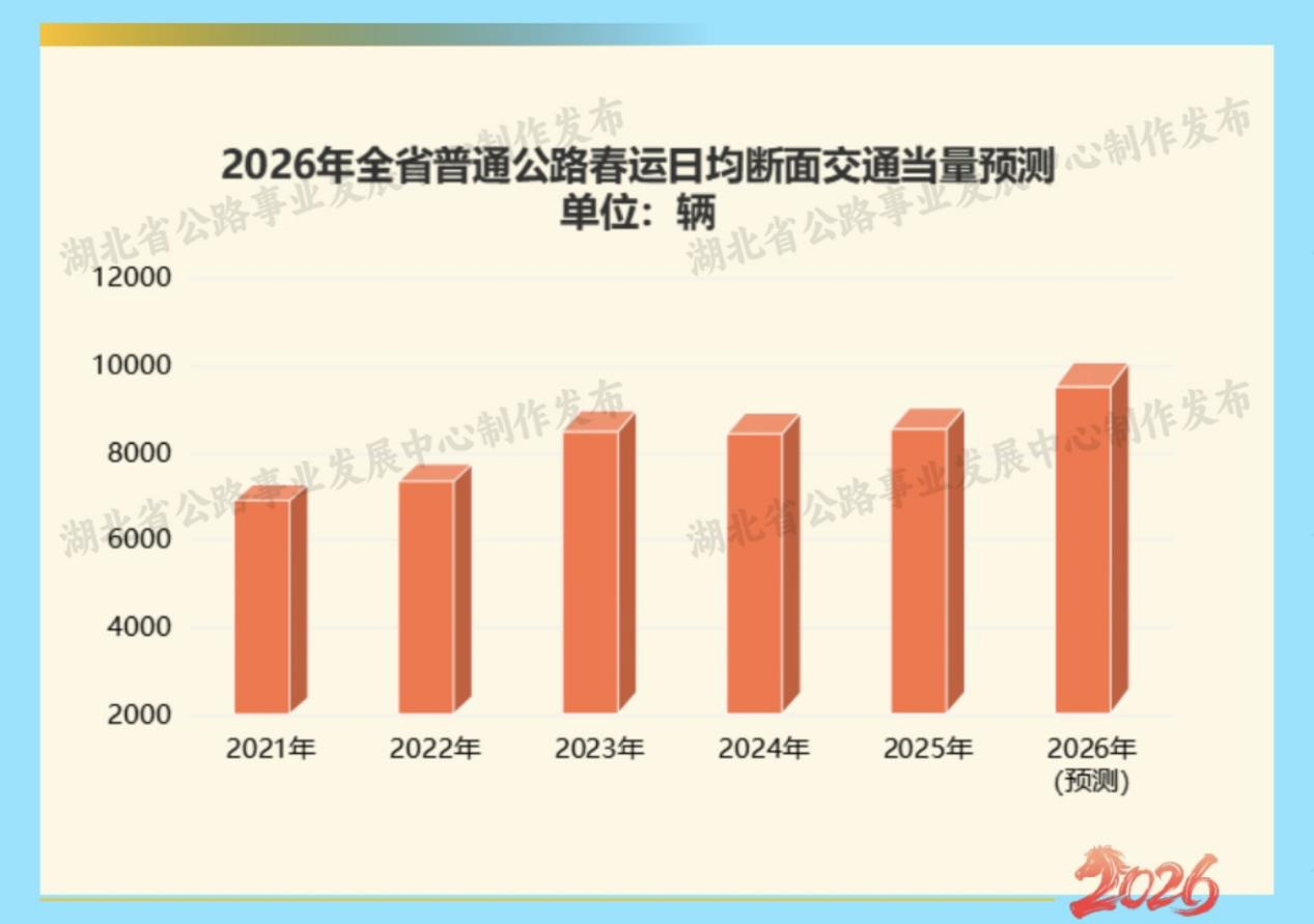 预判2026年春运期间普通国省干线公路日均断面交通当量,与2024年春运期间、2025年春运期间基本持平。