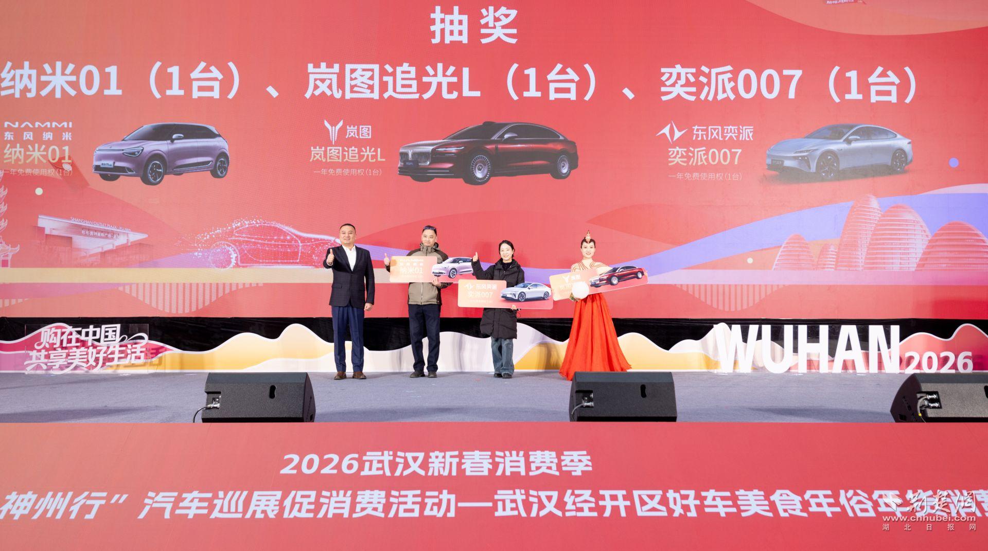 荆楚网(湖北日报网)讯(记者陈泉 通讯员蒋秋雨、李岿)新春乐购,车谷有礼。1月30日,2026武汉新春消费季暨“武汉造 神州行”汽车巡展促消费活动—武汉经开区好车美食年俗年货消费季启动仪式在武汉杉杉奥特莱斯启幕。
