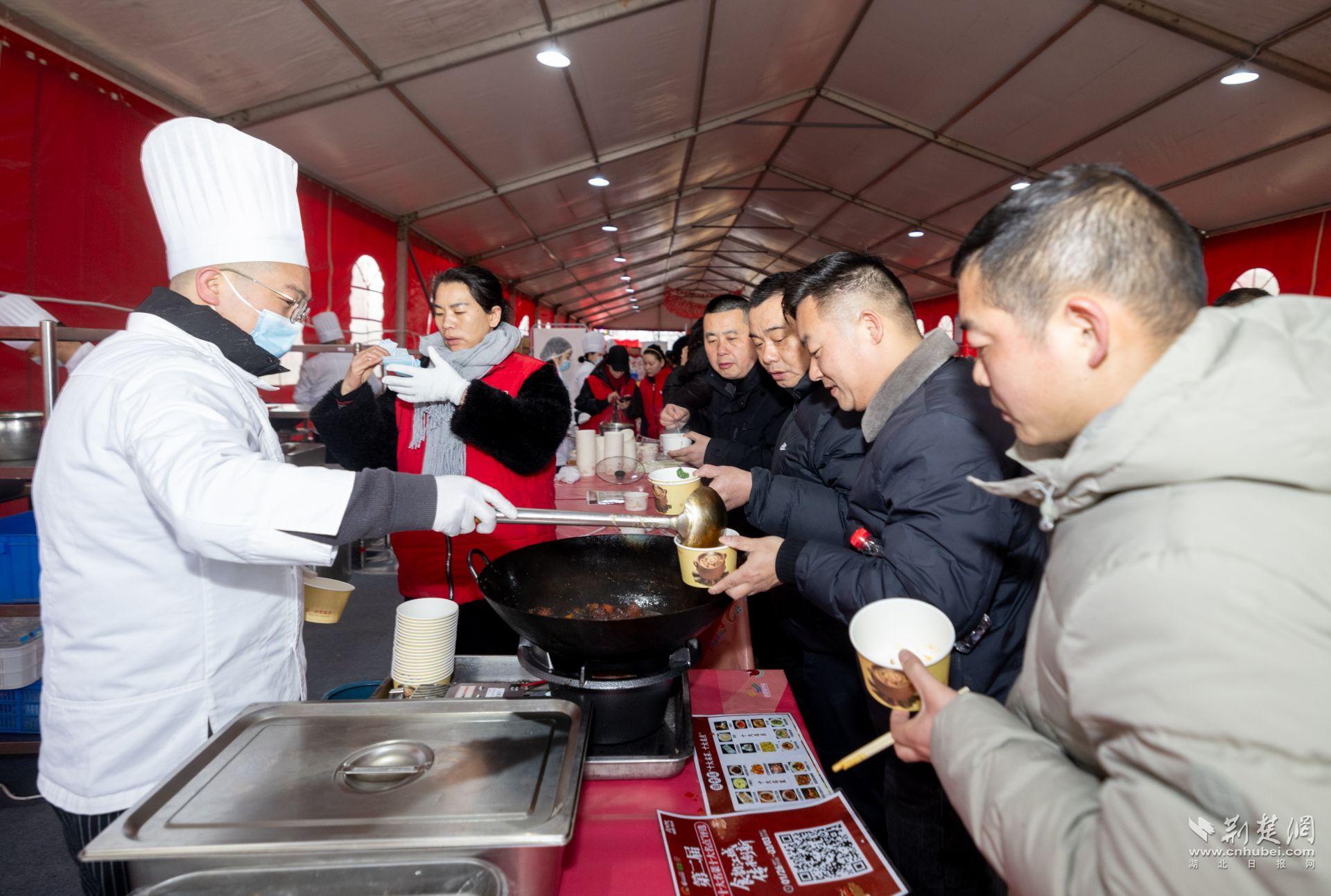 “扫码投票,免费品尝!”美食市集里,商户们纷纷吆喝起来,吸引市民前来品尝各自特色美食。市民李婆婆提着买的腊肠,竖起大拇指称赞这次活动:“今天天气比较冷,喝了热乎乎的羊汤、藕汤,还能现场采购年货,感觉很不错。”