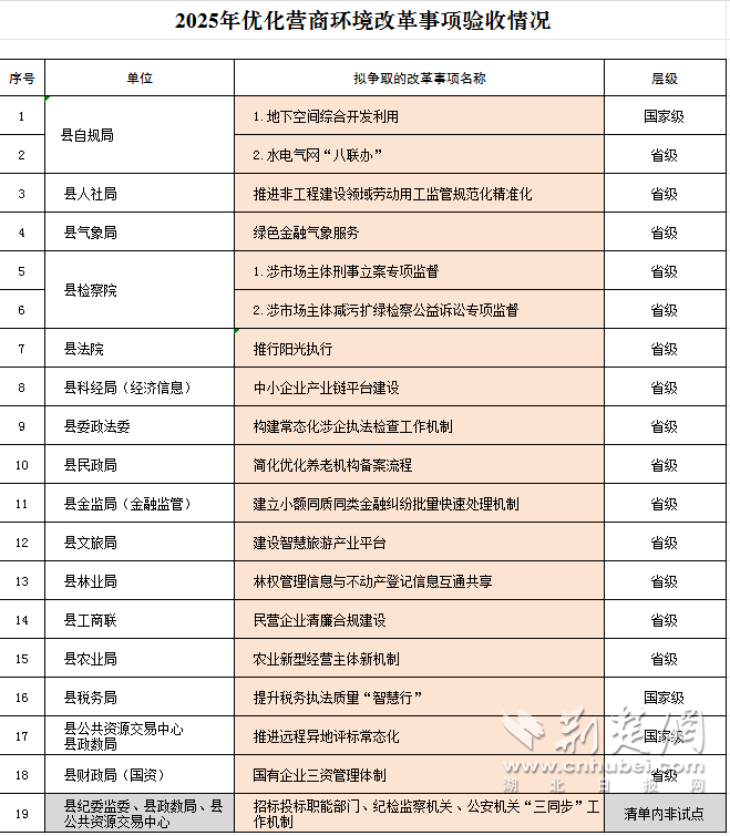 此次宣恩县纳入通报表扬的改革事项涵盖多个领域,涵盖自然资源开发利用、税务执法、公共资源交易、劳动用工监管、气象金融服务、检察监督与公益诉讼、司法执行、产业链建设、涉企执法、养老机构管理、金融纠纷处理、智慧旅游、林权与不动产信息共享、民营企业合规、农业经营机制创新、国资管理及招标投标协同机制等多个方面。