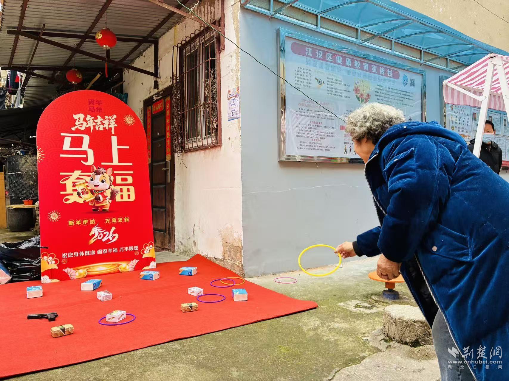 荆楚网(湖北日报网)讯(记者 何婧 通讯员 顾蝶)金黄的糖浆勾勒出灵动的骏马,糖葫芦和糍粑的香气在空气中交织,孩子们围着游戏摊位欢笑不停……2月3日上午,江汉区唐家墩街道新村社区里年味正浓,一场热闹的新春游园活动,把社区的节日气氛提前点燃。