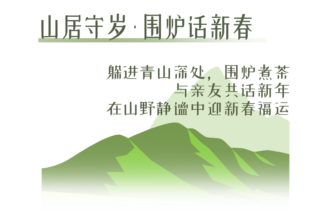 新春期间,开阔草坪上搭建了专属围炉区,配上年货小食、暖茶甜汤,三五好友围坐取暖,闲话家常;清晨推窗可见薄雾缭绕的山林,午后可沿景区步道徒步寻梅,傍晚在庭院点燃篝火,看星火与星光交映,沉浸式感受山野新春的静谧与温暖。