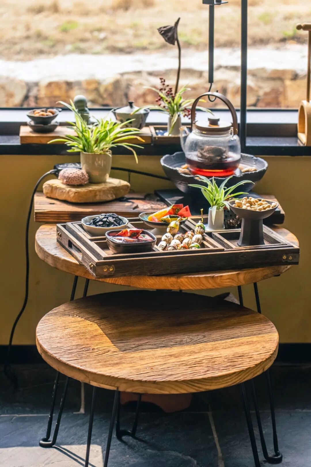 野谷境,藏在野村谷4A级景区的山野民宿,木石结构与自然光影完美交融,原木家具搭配棉麻织物,满是温润治愈的质感。