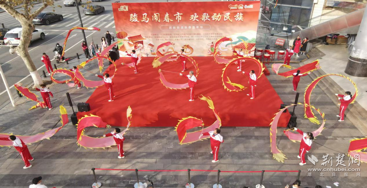 荆楚网(湖北日报网)讯(记者 何婧 通讯员 蔡京慧)2月2日上午,江汉区万商白马商城广场热闹非凡,伴随着欢快的锣鼓声,“骏马闹春市 欢歌动民族”马年新春嘉年华如期举行。