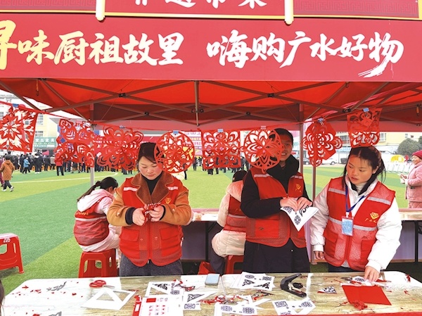 演出结束后,“詹王”美食品尝区、古法打糍粑体验区、年货好物展销区、民俗节目展演区、非遗文化传承展示区五大特色区域同时开放,市民们纷纷涌入,开启沉浸式“赶集”。
