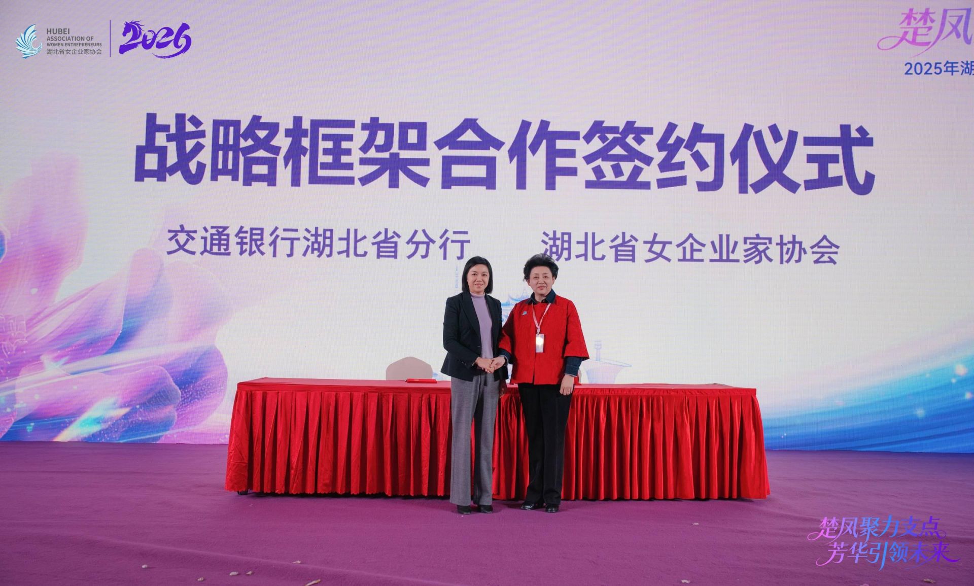 活动现场,湖北省女企业家协会与交通银行湖北省分行战略框架合作签约仪式,以金融赋能+全链服务的双重保障,为湖北中部地区崛起重要战略支点建设注入强劲“她能量”。