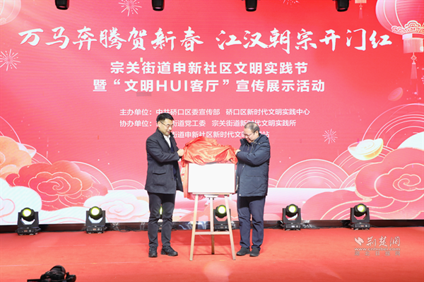 荆楚网(湖北日报网)讯(通讯员 武文明)春潮涌动汉江畔,文明实践谱新篇。2月6日上午,“万马奔腾贺新春 江汉朝宗开门红”文明实践节暨“文明HUI客厅”宣传展示活动举行。硚口先进典型代表、文明单位代表及文明实践志愿者、社区居民等百余人齐聚一堂,共同品味春节文化“大餐”,见证申新社区“文明HUI客厅”这一文明实践新阵地的启用。