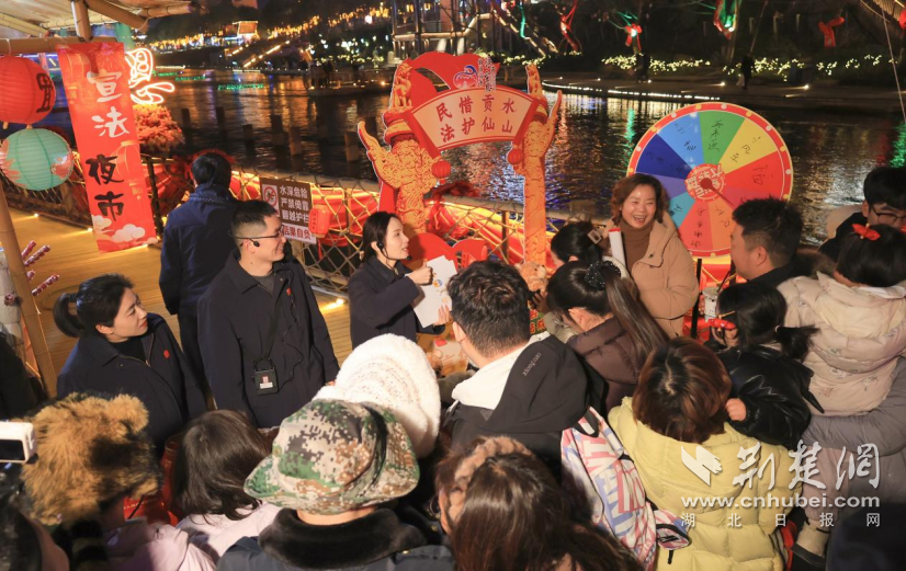 近日,宣恩法院干警利用居民夜间休闲时间“出摊”普法,带着满满的法律干货走进热闹的水上集市,将专业的法治服务融进赶年集的烟火气中。