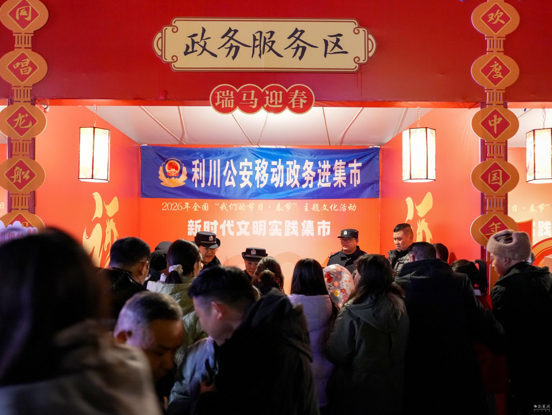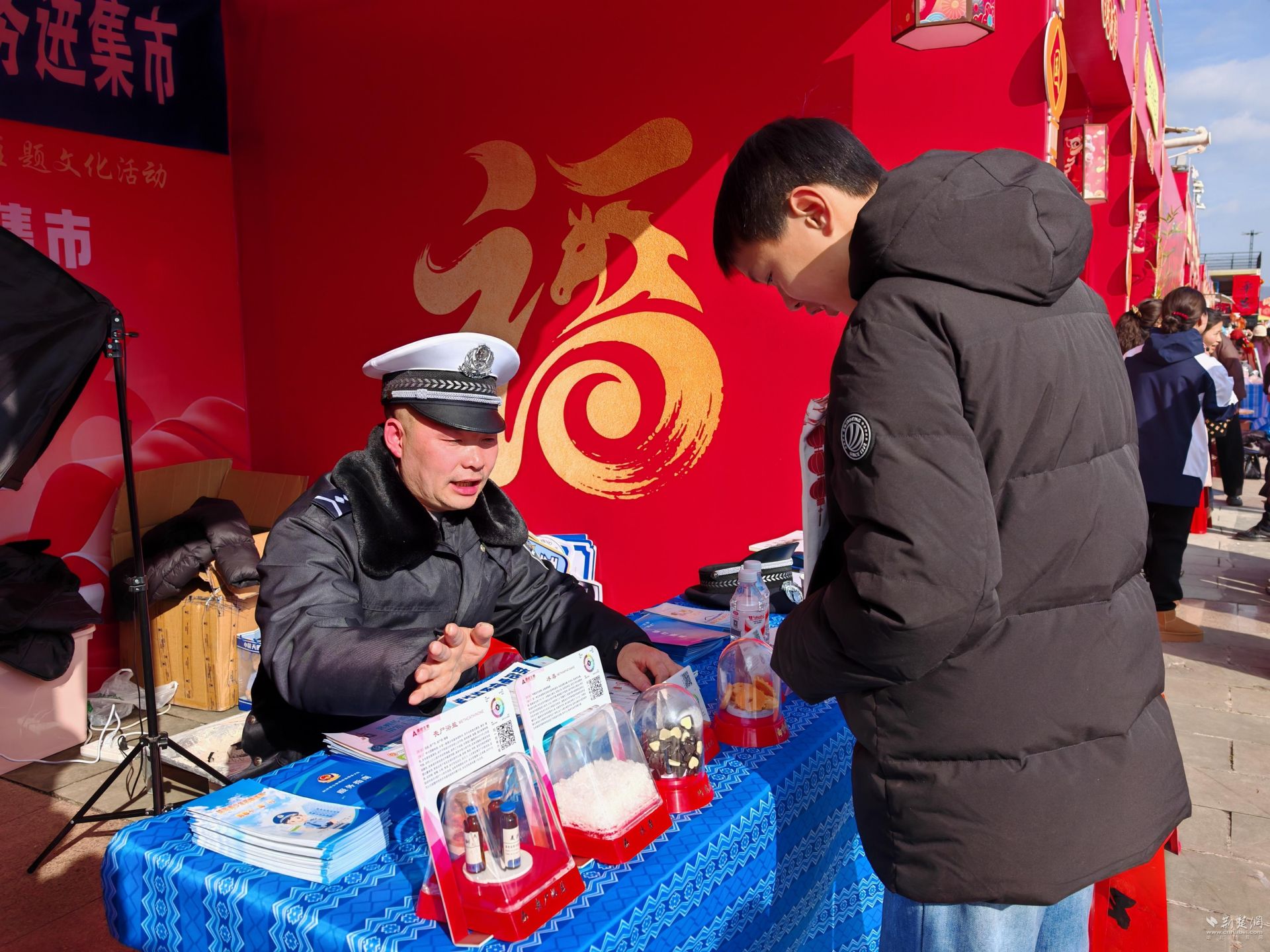 荆楚网(湖北日报网)讯(通讯员赵万佳)2月10日至11日,在湖北利川举办的“我们的节日·春节”2026年全国主题文化活动启动仪式现场,琳琅满目的年货集市人流如织,几处特别的“摊位”也吸引了不少市民驻足——利川市公安局组织禁毒、交警、政务服务等多警种走进热闹的集市,将禁毒知识、交通法规、便民服务打包成一份份特殊的“平安年货”,送到群众手中,让安全知识伴着浓浓烟火气,融入千家万户的团圆时刻。