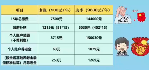 了解完养老金怎么算再让我们来对比一下缴多缴少的区别↓↓↓
