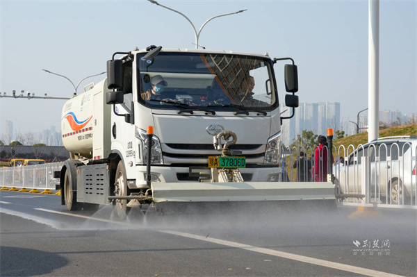 洒水车进行路面清洗作业。 通讯员供图