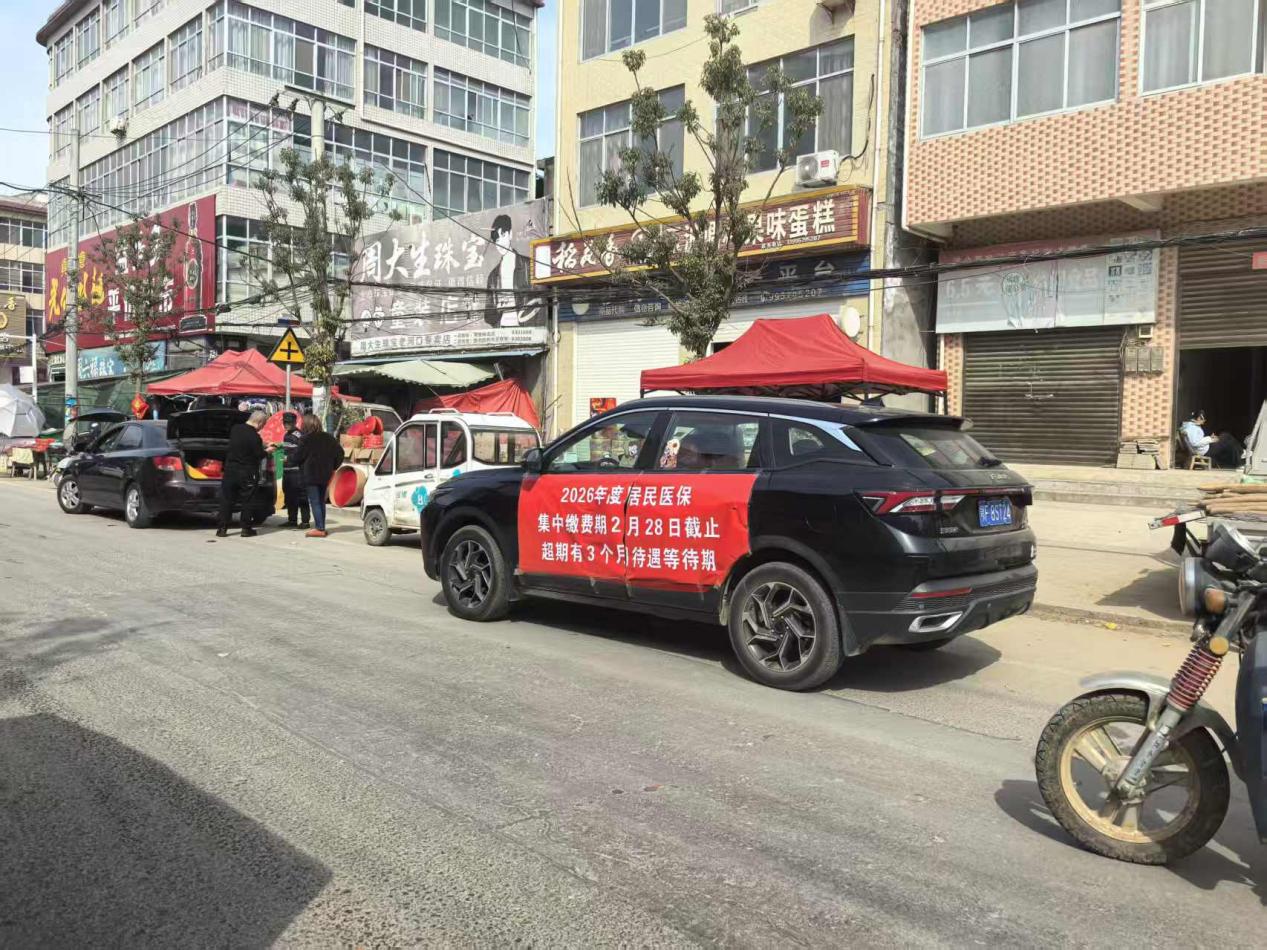 荆楚网(湖北日报网)消息(通讯员 蔡龙飞) 2月13日,袁冲乡纪洪集市人声鼎沸。一辆车身张贴“2026年度居民医保集中缴费期2月28日截止”标语的“参保扩面宣传车”缓缓驶入集市中央,车载广播循环播放着2026年度参保缴费政策提醒,引来赶集群众纷纷驻足。这是老河口市医保局抢抓返乡高峰窗口期,开展城乡居民参保扩面全域宣传的一个缩影。