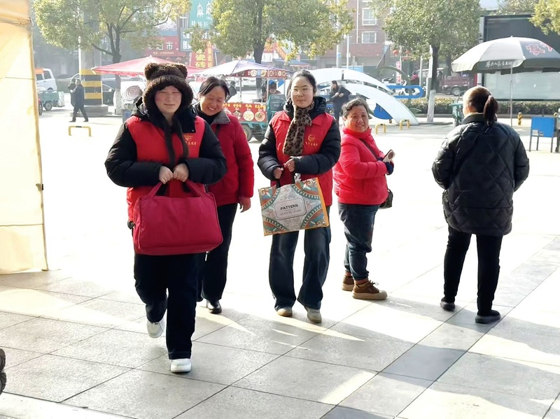 在车站的各个关键枢纽,志愿者们身着红马甲,为旅客提供服务,守护出行安全。在售票大厅,志愿者们协助不熟悉智能手机的旅客操作电子购票;在安检入口和通道处,主动帮扶行动不便、行李繁多的旅客,引导人流有序通行;志愿者们还免费发放口罩、矿泉水、消毒湿巾等物资,普及健康出行知识。