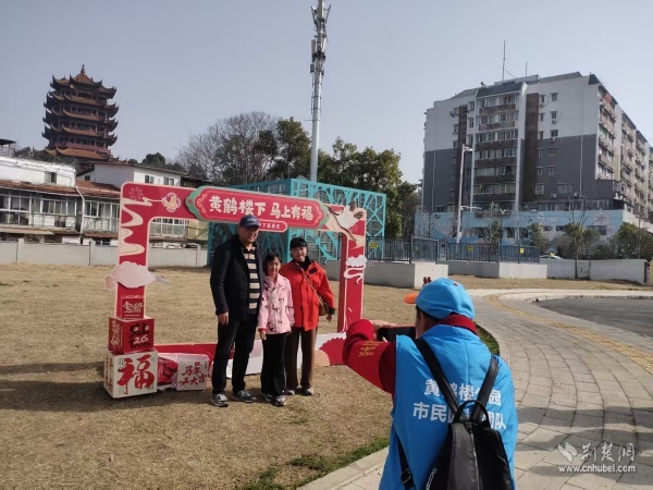 看到游客们想在黄鹤楼前合影留念,志愿者们主动上前帮忙,教大家摆姿势,定格下登楼祈福的美好瞬间,让游客感受江城的温情。他们还随手捡拾辖区及景区外围的垃圾,劝导不文明行为,用实际行动维护环境的整洁美观,守护着名楼的生态与文明颜值。