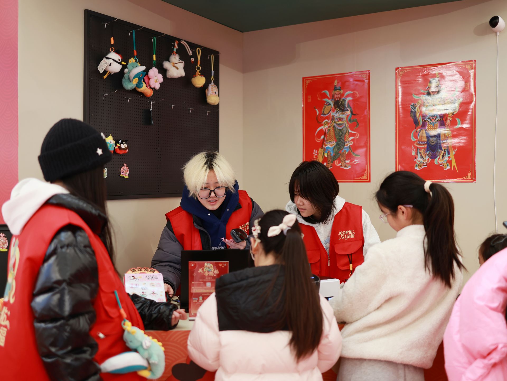 据介绍,1月31日,快闪店特别推出行进式趣味“三国知识”小课堂主题活动,吸引百余位小朋友踊跃参与。本次三国小课堂每堂课程含互动环节时长约30分钟,现场设置赤兔马组、桃源三结义组、武圣关公组等多个主题组别,由专业工作人员带队引导,让孩子们在沉浸式体验中学习趣味三国知识。活动同步推出AIGC关公互动、红包拓印DIY、手写祈福签等六大趣味玩法,寓教于乐、形式新颖。截至3月3日前,快闪店内还将定期开展现场手绘金福、书写春联等年俗体验活动,并设有多种创意打卡互动环节,现场氛围热烈,趣味十足。
