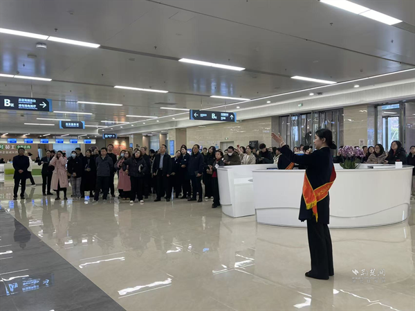实训开篇,全体参训人员实地观摩区政务服务中心大厅一、二楼层。工作人员围绕功能分区规划、窗口优化布局、智能设备运维及转型改革创新举措展开细致讲解,通过现场演示、流程拆解等方式,让参训人员直观掌握大厅运营逻辑与服务细节,为精准提升服务质效夯实实践基础。