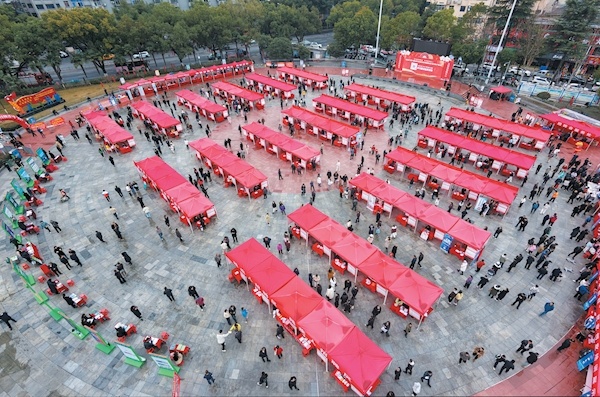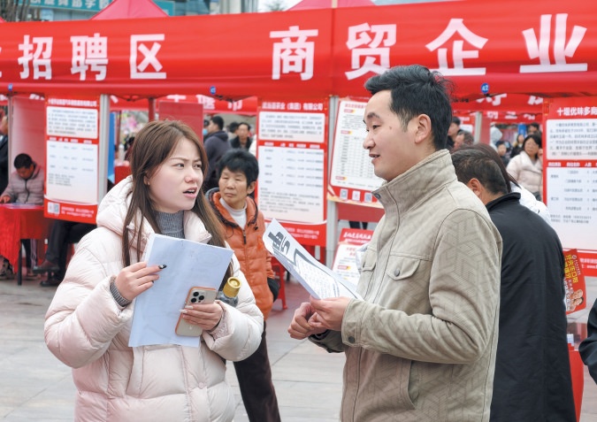 2月26日,2026年十堰市“春风行动”返乡就业创业专场招聘会暨十堰“好房子”推介活动在市人民广场举行。此次活动由市人民政府主办,市人社局、市住房和城市更新局承办。招聘会吸引218家企业参与,提供岗位1.1万余个,当天9000余名求职者进场咨询,初步达成就业意向2170人。记者赵清张建波摄
