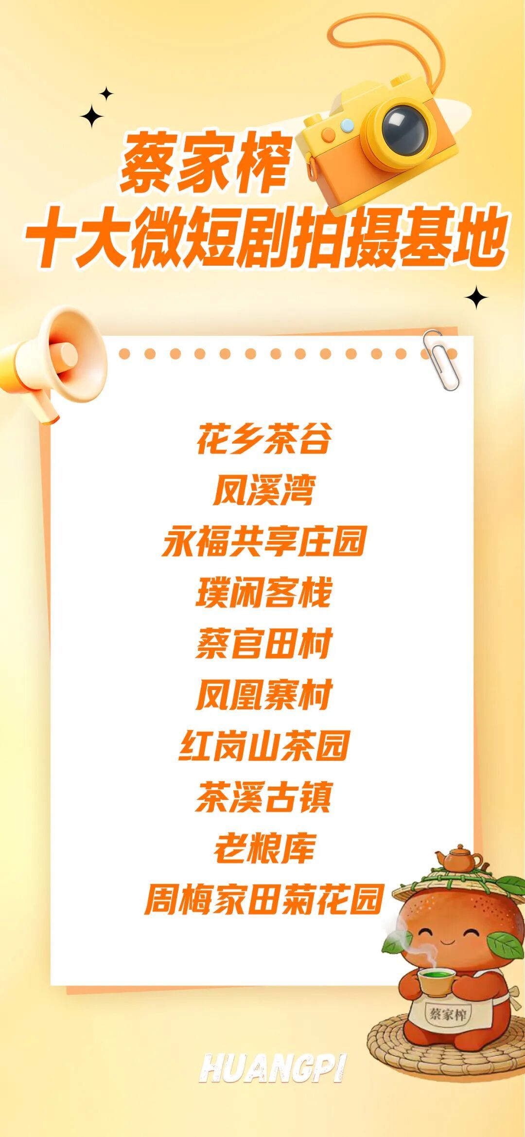 这十大场景,是蔡家榨的颜值担当,有镜头里取之不尽的美景、讲不完的故事。从田园诗意到古镇古韵,从生态茶乡到工业文创,多元风格全覆盖,轻松适配各类微短剧创作需求。