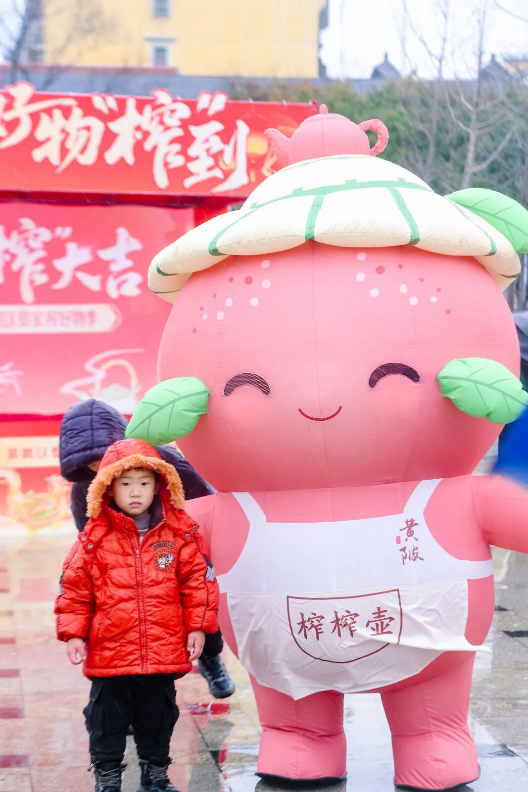 ◦ 小朋友在活动现场与榨榨壶合影。