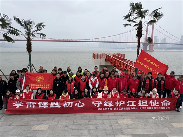 荆楚网(湖北日报网)讯(通讯员 吕智敏)在第62个学雷锋纪念日来临之际,3月3日,武昌区紫阳街道联合武汉市园林建筑工程有限公司、武昌区水务局及歌笛湖社区长江救援队文昌门支队,在武昌湾1956公园开展“学雷锋践初心,守绿护江担使命”主题志愿服务活动,以志愿行动传承雷锋精神,用实际举措守护长江生态。