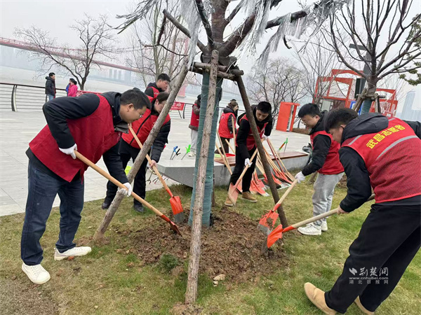 理论学习终要落地于实践行动。宣讲结束后,志愿者们手持夹钳、垃圾袋等工具,对长江岸边的垃圾、杂草及水面漂浮物开展地毯式清理,不放过任何卫生死角,用双手让杂乱的滩涂恢复整洁开阔。恰逢植树节将至,志愿者们又挥锹铲土、扶苗围堰、提水浇灌,在指定区域有序栽种新苗,为长江岸线增添一抹新绿,以实际行动厚植生态底色,践行绿色发展理念。