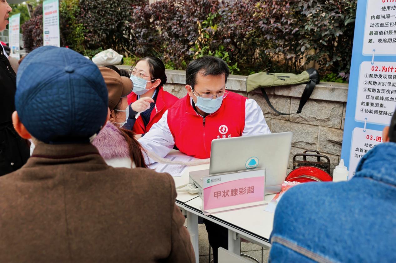 测起来,知健康。武汉市中心医院和东湖社区卫生服务站的医护人员组成健康小分队,提供免费血压、血糖测量及健康咨询服务,守护居民健康。