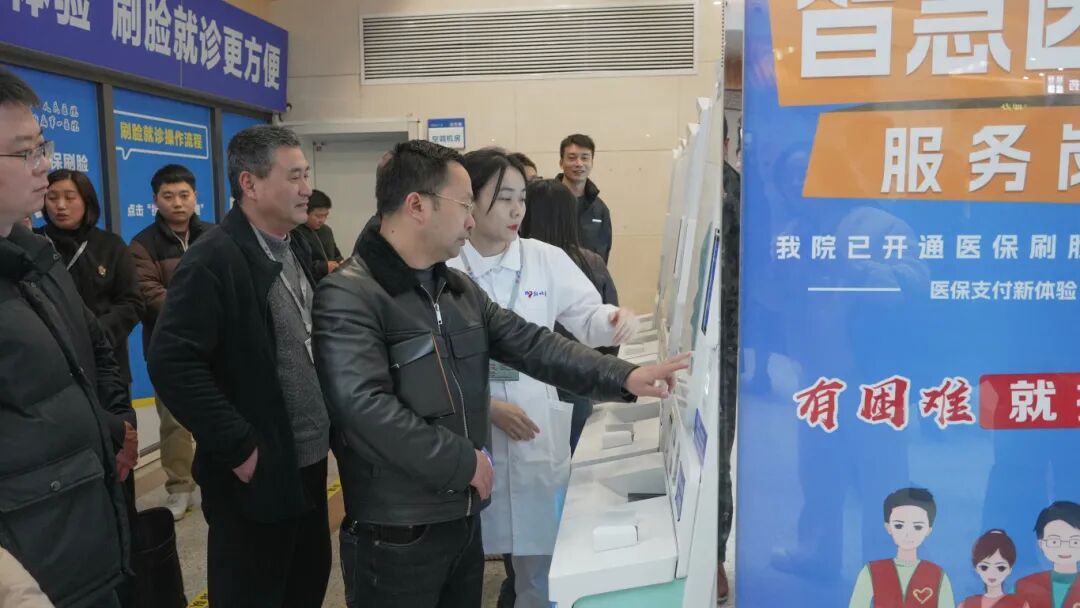 在荆州一医总院门诊大厅“无感支付”服务现场,参会人员现场观摩了医保刷脸结算、自助机无感缴费等全流程操作。详细了解医院在设备布局、流程优化、便民服务等方面的具体举措。参观过程中,医院工作人员现场演示了“刷脸秒结算”的便捷流程,从人脸识别到费用核算、医保报销抵扣全程仅需数秒,参会人员对医院无感支付服务的高效性和便捷性给予高度评价。
