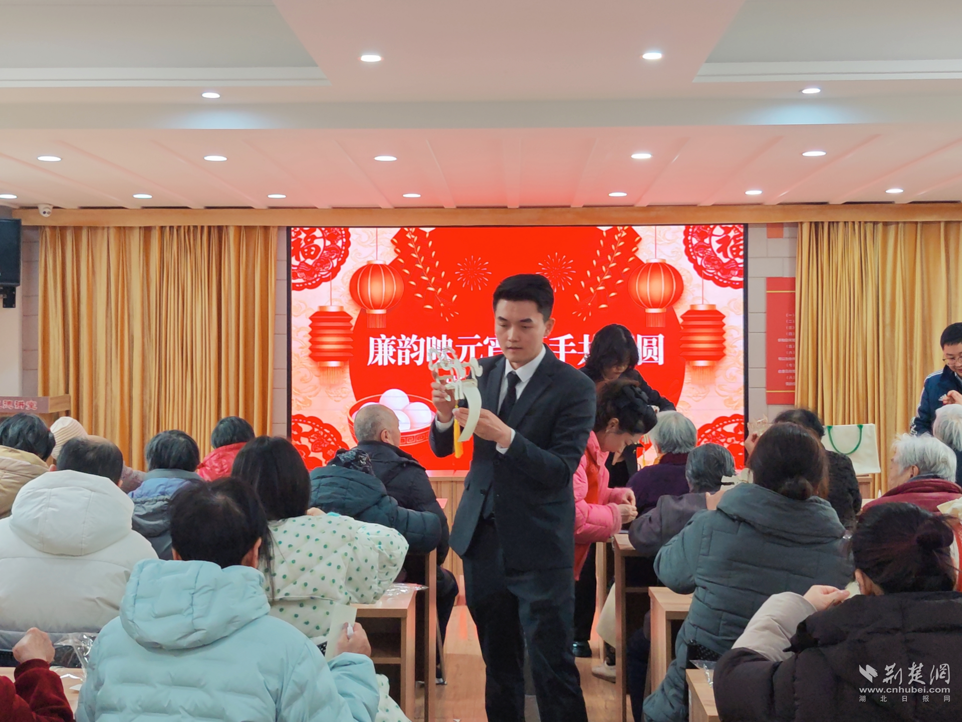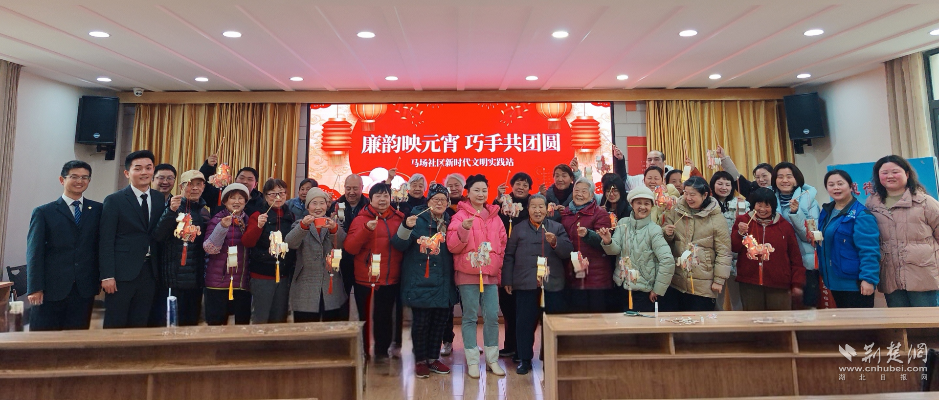 荆楚网(湖北日报网)讯(记者 何婧 通讯员 顾蝶)3月3日,元宵佳节来临之际,江汉区唐家墩街道马场社区新时代文明实践站联合颐伦养老服务中心、合众人寿举办“廉韵映元宵 巧手共团圆”主题活动。社区党员、居民代表和志愿者齐聚一堂,在做灯笼、猜灯谜、品汤圆中共度佳节,也在潜移默化中接受了一堂生动的廉洁教育课。