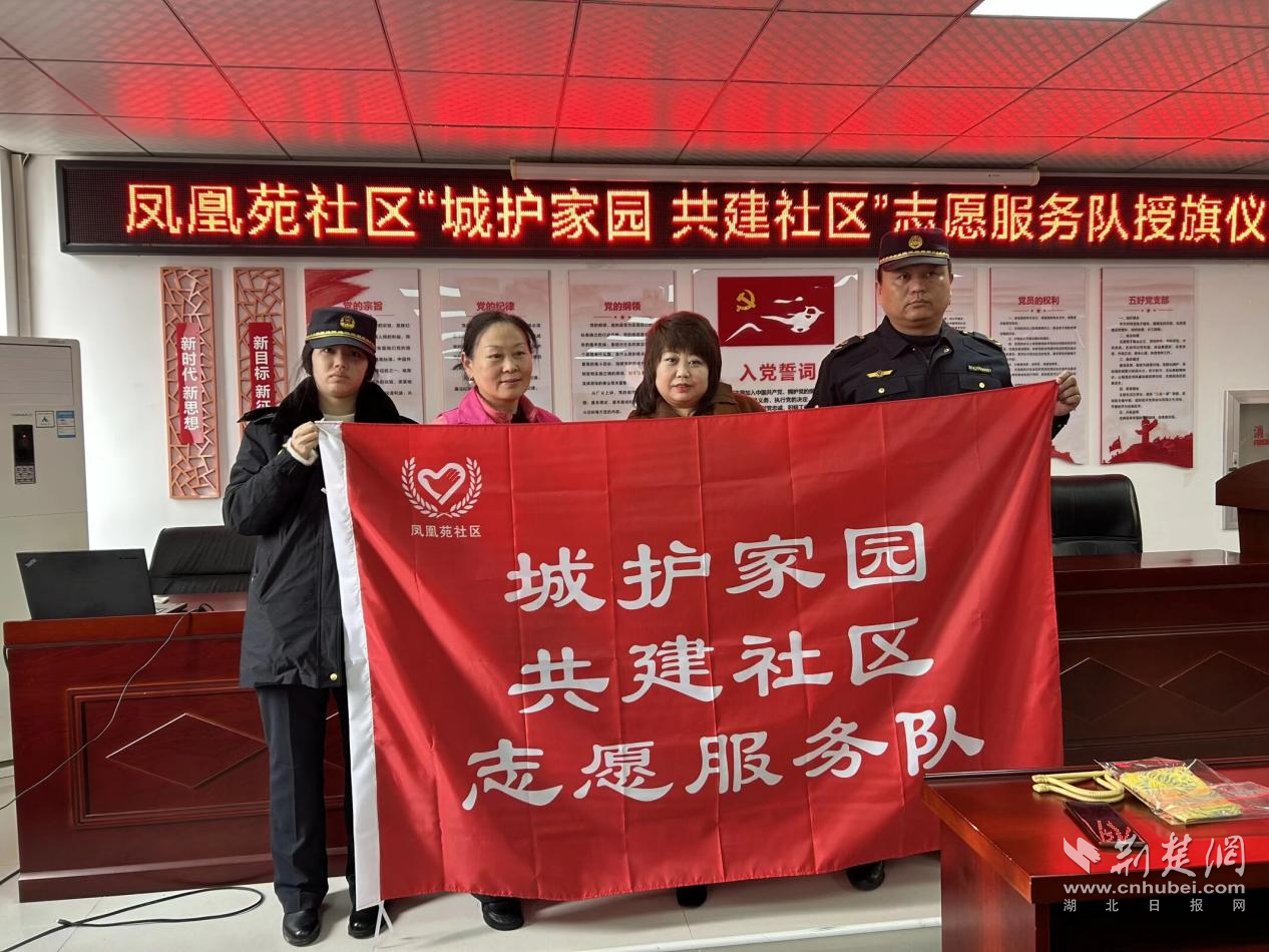 现场为“城护家园 共建社区”志愿服务队授旗。通讯员供图
