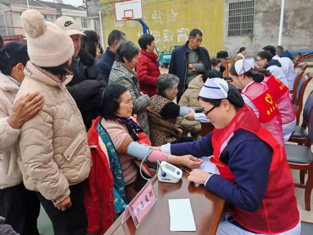 3月4日上午,潜江市中心医院本禹志愿服务队组建专项医疗团队,汇聚内分泌科、心内科、康复科、妇科、神经内科、眼科等多个科室的骨干专家,携带专业医疗设备,早早奔赴杨市街道办事处,为当地村民提供免费健康义诊服务,把优质医疗资源送到群众“家门口”。