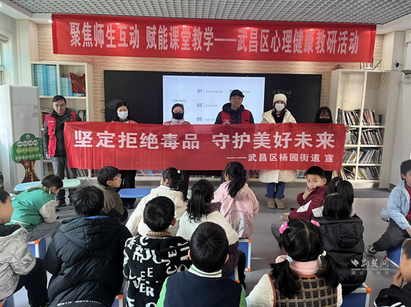 荆楚网(湖北日报网)讯(通讯员 曾玉兰 侯本瑞)为全面做好青少年毒品预防教育工作,进一步提高青少年的禁毒知识、防毒意识和能力,筑牢校园禁毒安全防线。3月5日,在武昌区分局禁毒大队指导下,杨园街道社区戒毒康复中心联合杨园派出所、司法所和纺器社区走进余家头小学,开展“禁毒开学第一课”宣传活动。