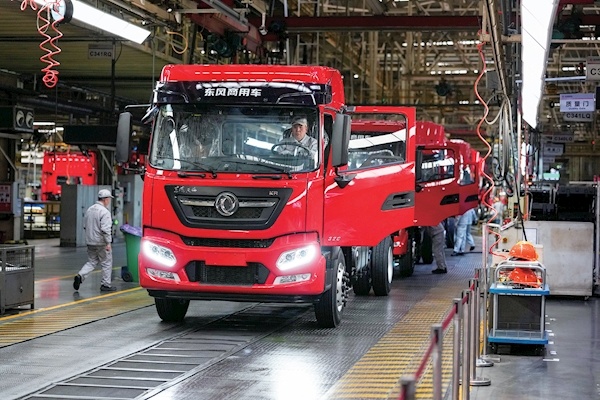 3月6日,记者在东风商用车有限公司整车工厂看到,各条生产线节奏强劲、全速运转,一辆辆东风商用车接连下线。