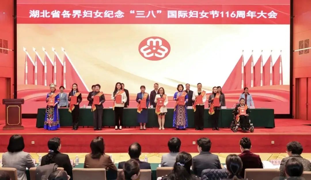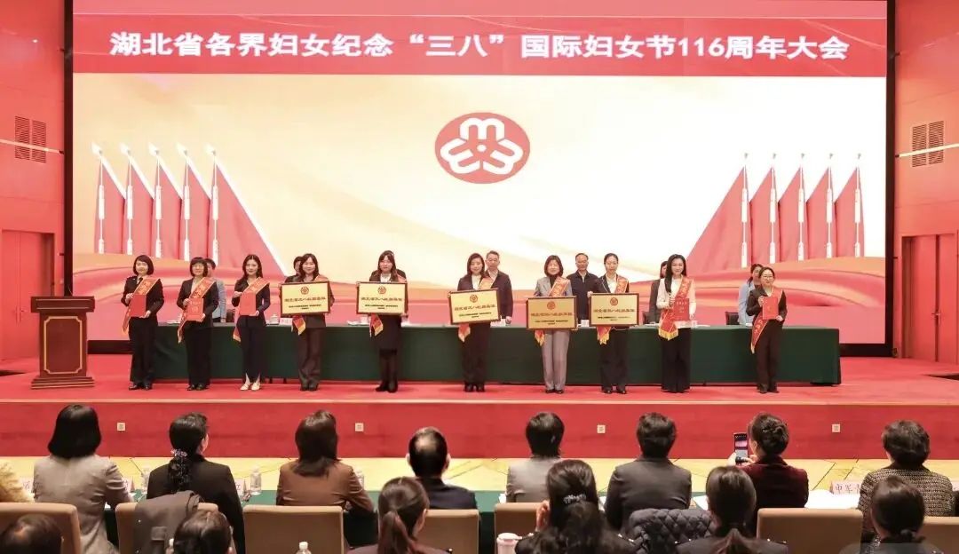 会议为获得2024-2025年度湖北省三八红旗手标兵、三八红旗手、三八红旗集体代表进行颁奖。