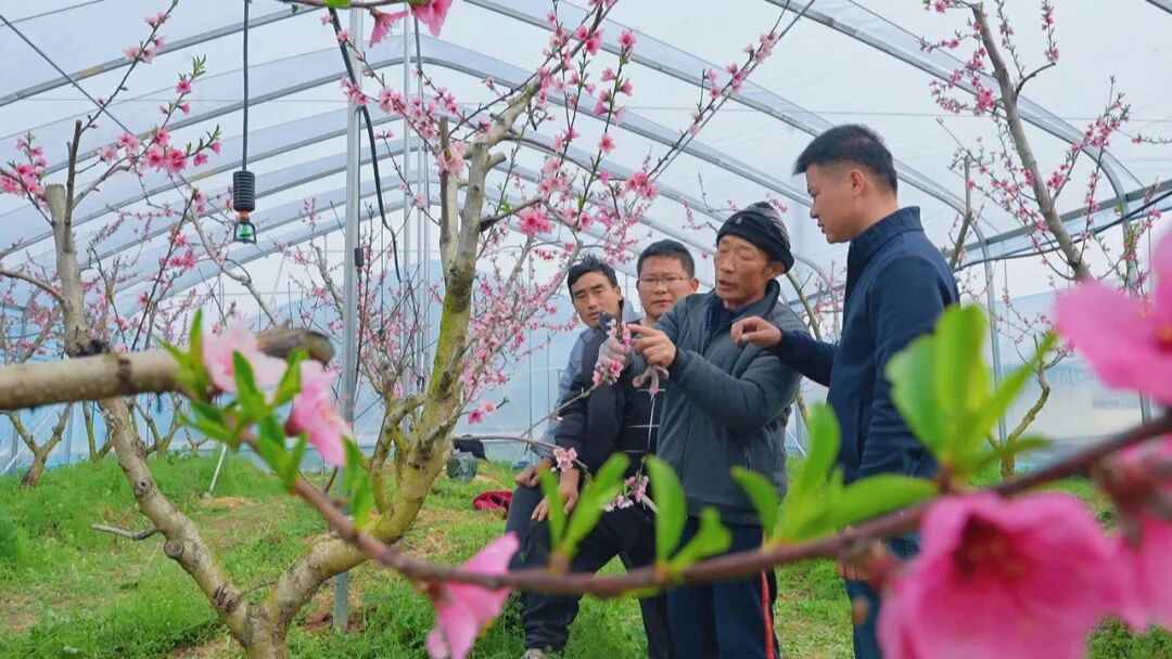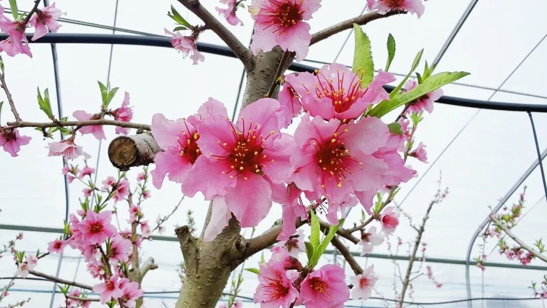 目前,基地共培育七大优质油蟠桃品种,花期次第有序、错峰绽放:红肉油蟠桃于2月开花,预计5月10日左右成熟;黄肉、白肉油蟠桃均在3月开花,分别于5月20日、6月1日左右陆续成熟。这种错峰培育模式不仅保障了果实品质,也实现了高效稳产、错峰上市,进一步丰富了湖北省早熟桃类市场供给,为基地带来可观的经济效益和广阔的市场前景。